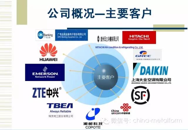 中国国际金属成形展推出了大量优秀的冲压、锻造和钣金设备、模具、自动化、下料、表面处理等展商,受到了零部件企业的欢迎。 广州从化精密钣金制造(集团)有限公司成立于1993年,主要从事设计、生产(制造、焊接、喷涂、装配和电气装配调测)以及空调蒸发器、冷凝器制造。