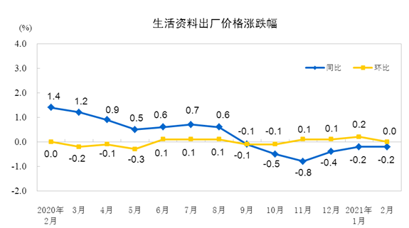 【数据发布】2021年2月份工业生产者出厂价格 同比上涨1.7% 环比上涨0.8%