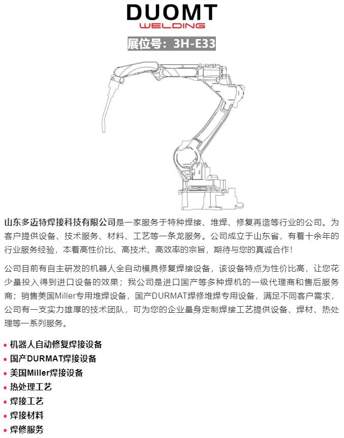 【展商推介】山东多迈特焊接科技有限公司,展位号:3H-E33